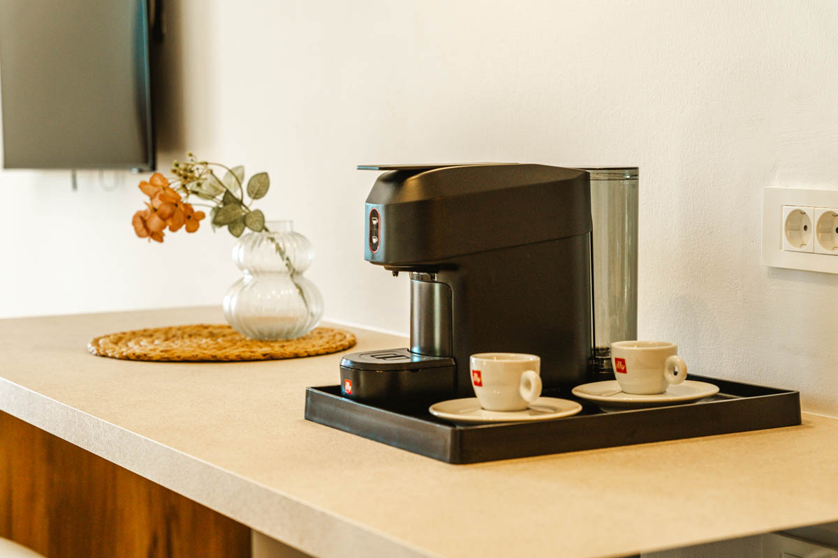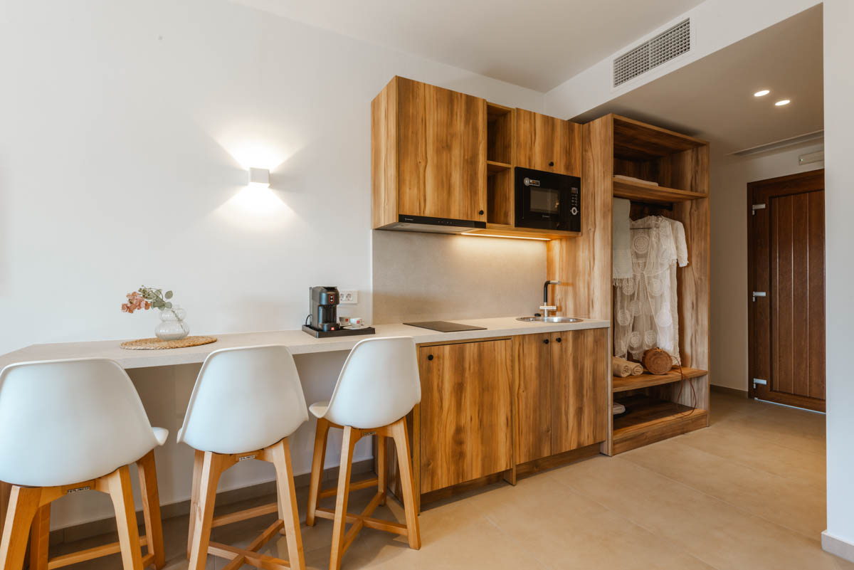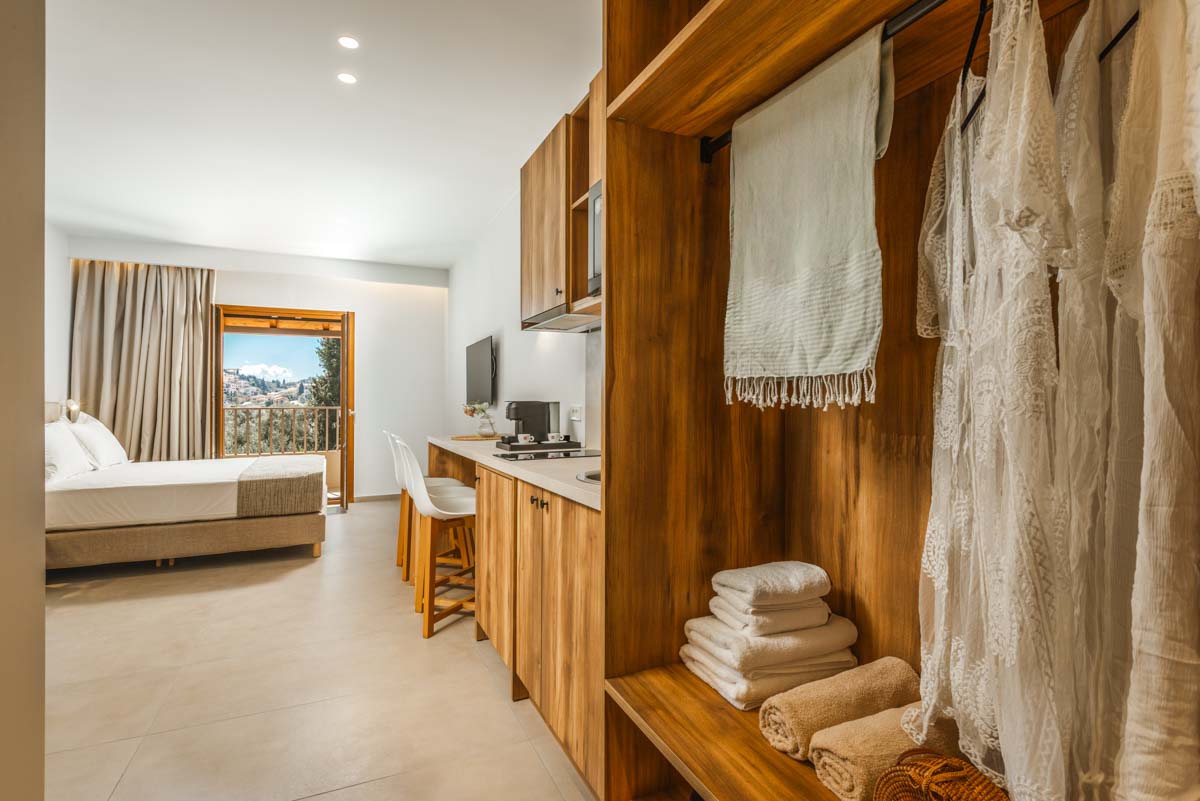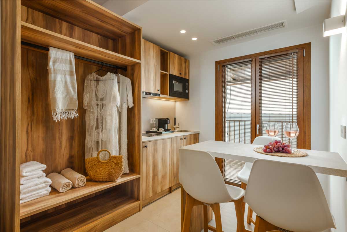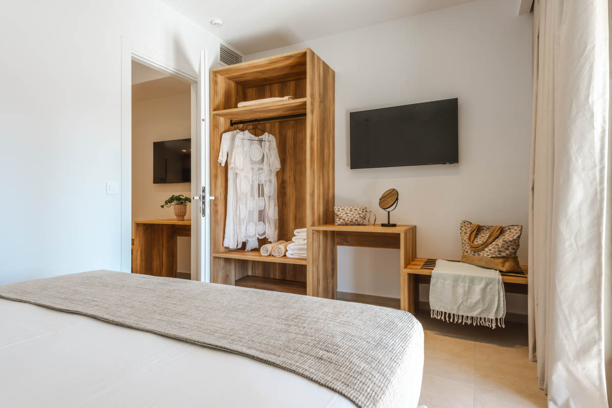 Ζήστε την εμπειρία της διακριτικής πολυτέλειας στα Superior Apartments. Με εμβαδόν 50 τ.μ., αυτά τα διαμερίσματα είναι σχεδιασμένα για όσους αναζητούν την άνεση ενός πραγματικού σπιτιού. Η διαρρύθμιση προσφέρει ιδιωτικότητα, διαχωρίζοντας το κυρίως υπνοδωμάτιο με το διπλό κρεβάτι από το ευρύχωρο σαλόνι με τον γωνιακό καναπέ-κρεβάτι. Με πλήρως εξοπλισμένη κουζίνα και μοντέρνο μπάνιο με walk-in shower, κάθε λεπτομέρεια είναι προσεγμένη. Διαθέσιμα σε ισόγειο, 1ο και 2ο όροφο, τα διαμερίσματα διαθέτουν ιδιωτικό μπαλκόνι ή βεράντα για να απολαύσετε τον εξωτερικό χώρο.